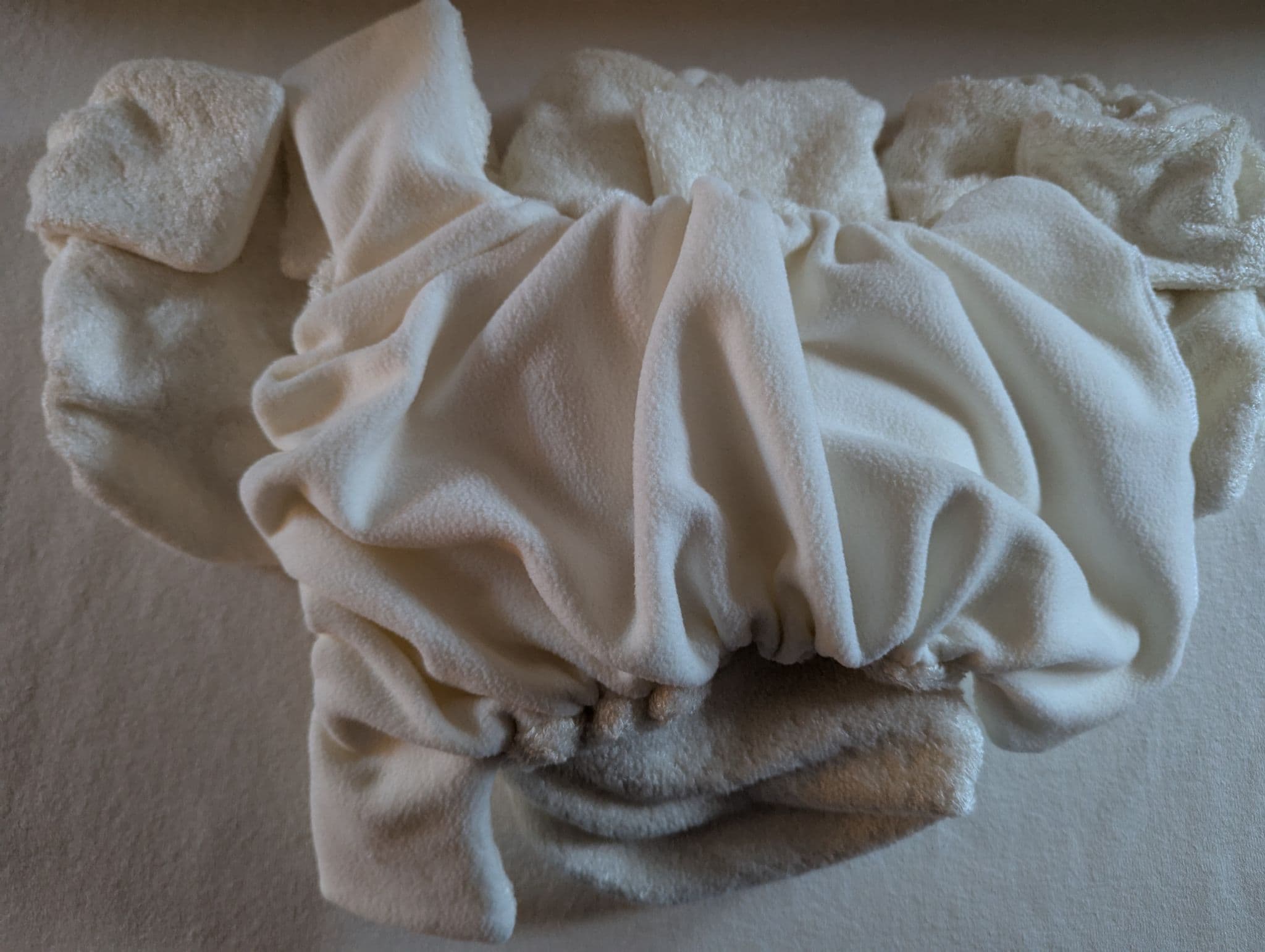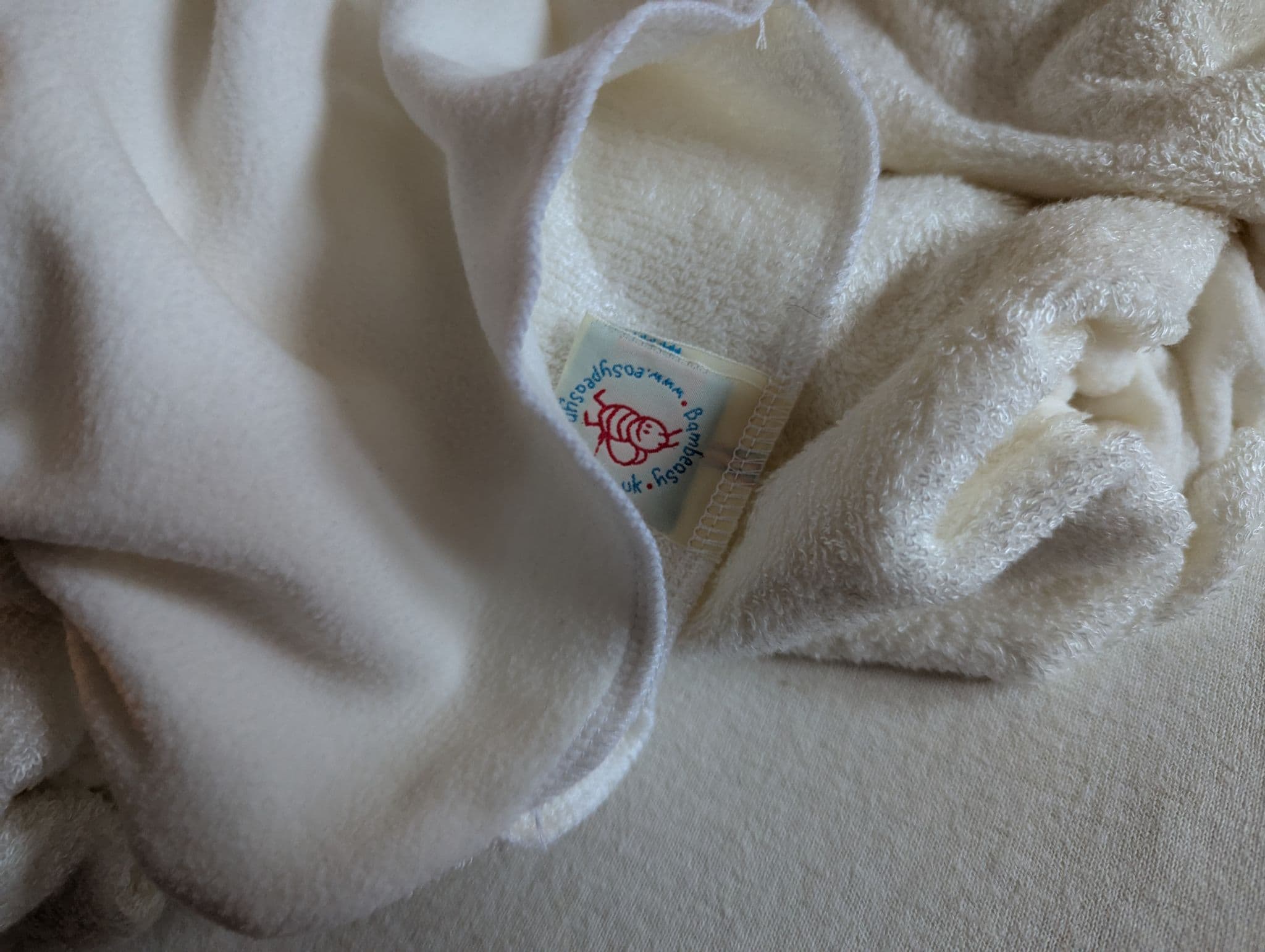 The nappy is a btp nippa nappy. It is made of one layer soft cream colour bamboo and one layer cream micro fleece with a pouch in which you put the absorbency. So basically grab an Eco Bumble, chop up and old towel and away you go! No more pricey nappy systems or fancy poppering.